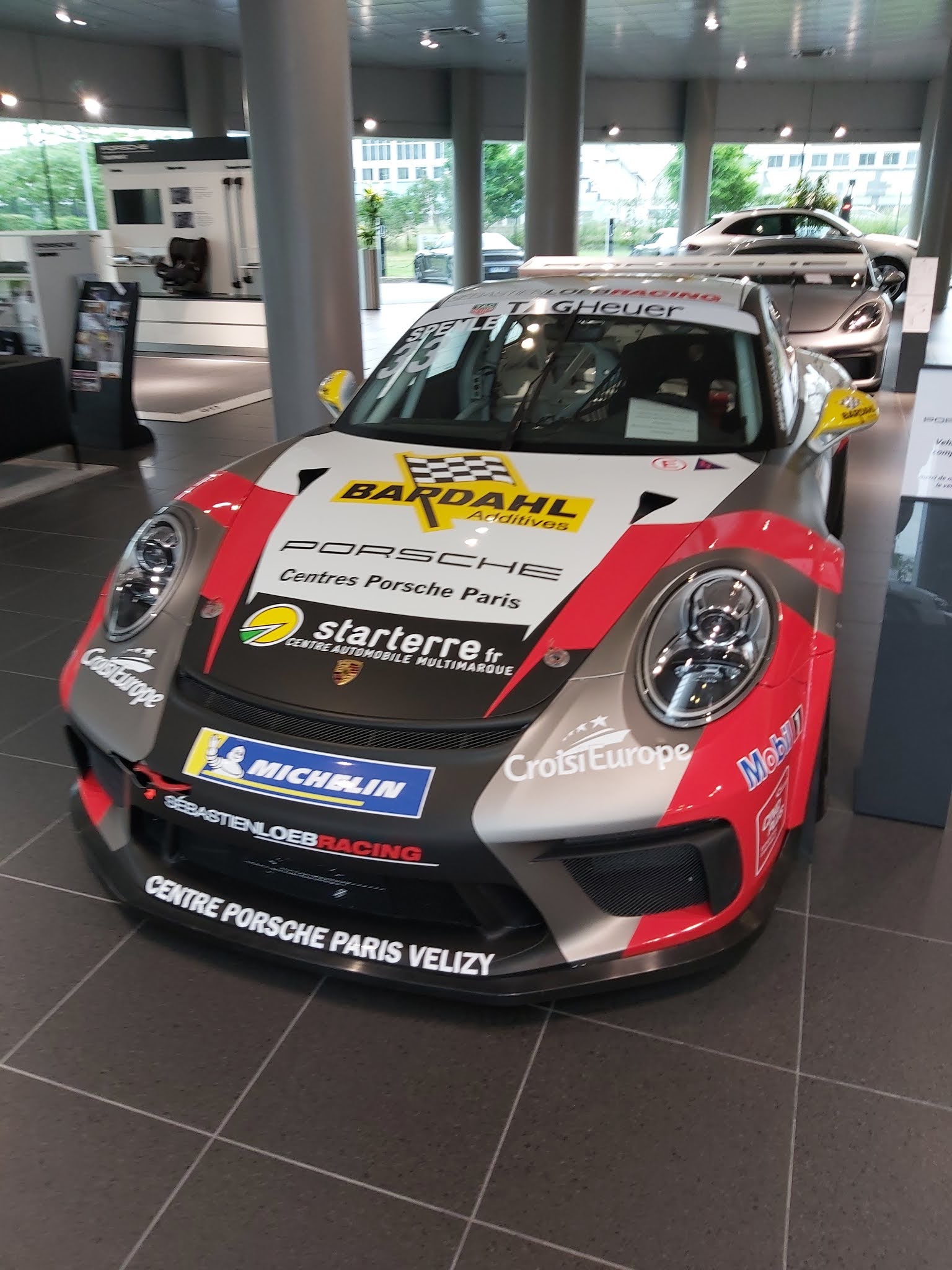 Très beau concessionnaire, bon c'est Porsche donc on s'attend à quelque chose de bien, mais là il y a une Porsche GT3 cup. Je recommande vivement le petit détour.